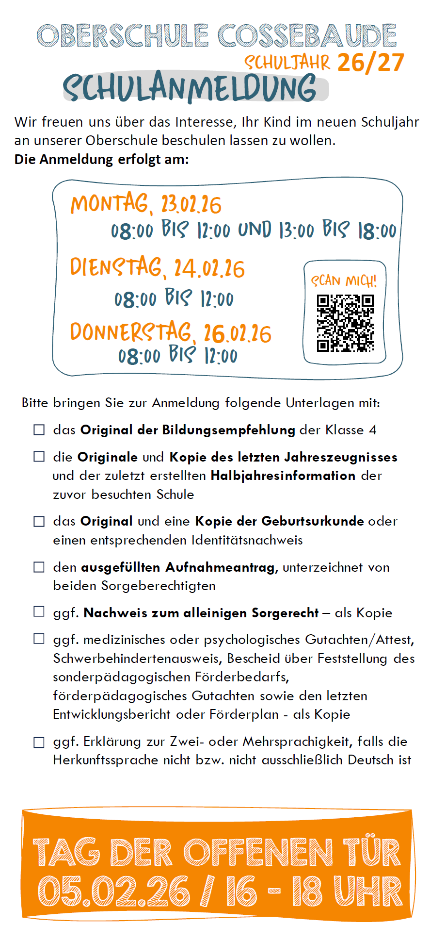 Anmeldung Klassen 5 für das Schuljahr 2026/2027
