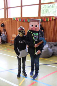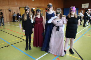 Unter dem Motto „Maskenparty“ fand am 29. Oktober 2025 die 1. Schulparty in der Turnhalle der Oberschule statt. Die Turnhalle war nach der Umgestaltung kaum wiederzuerkennen. Lichterketten, Luftballons, Sitzsäcke und eine Musikanlage sorgten für die perfekte Partystimmung. Um 16 Uhr betraten schaurig-schöne Gestalten, aber auch elegante Damen und Comicfiguren die Turnhalle. Die Schülerinnen und Schüler der zehnten Klassen luden sofort zu einer Polonaise ein. Drei Stunden lang wurde getanzt und gefeiert. Spiele sorgten für Spaß und die schönsten sowie kreativsten Kostüme wurden ausgezeichnet. Die wochenlange Planung des Schulparty-Teams war aufgegangen und die erste Schulparty war ein voller Erfolg.
